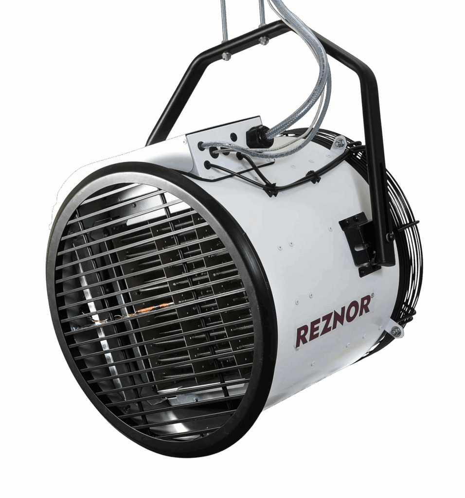 The innovative adaptive control system of the e+ constantly monitors the unit output to maintain the required room temperature, ensuring efficient energy use and a reduced carbon footprint. Our range offers 10, 20, and 30kW heating capacities, all designed for three-phase electrical supply. Power your e+ heater with renewable electricity for even greater sustainability. Install easily with our innovative hanging bracket, allowing versatile throw angles of 15° and 45° downwards. The e+ heater elements are built up of 10kW modules to provide the heat demand. The helix wire of the element provides instant heat and efficient heat transfer to the air flowing over the element(s). The casing of the element assembly is made from aluminised steel with high-temperature resistance. A thermal cutout switch is integrated into each element assembly to monitor the operating temperature and prevent the heater from overheating.